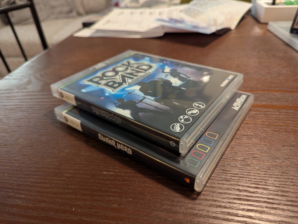 Not too much creativity here on my part, though I did enjoy aligning Rock Band’s iconic instrument symbols with Guitar Hero’s iconic five-color fret buttons.